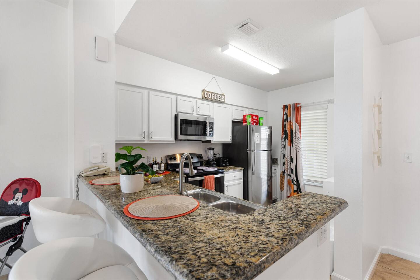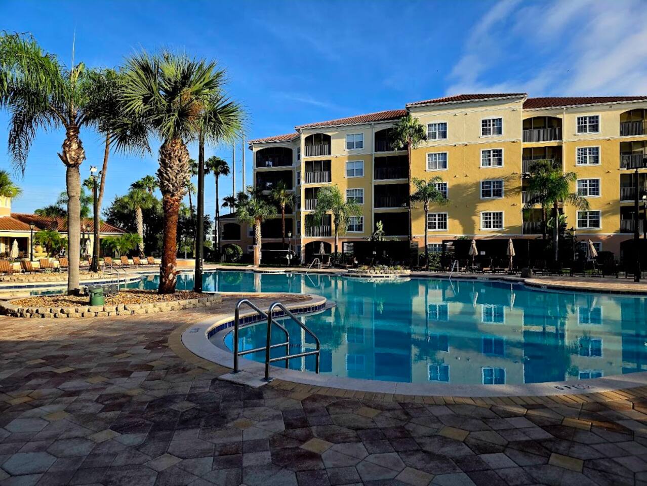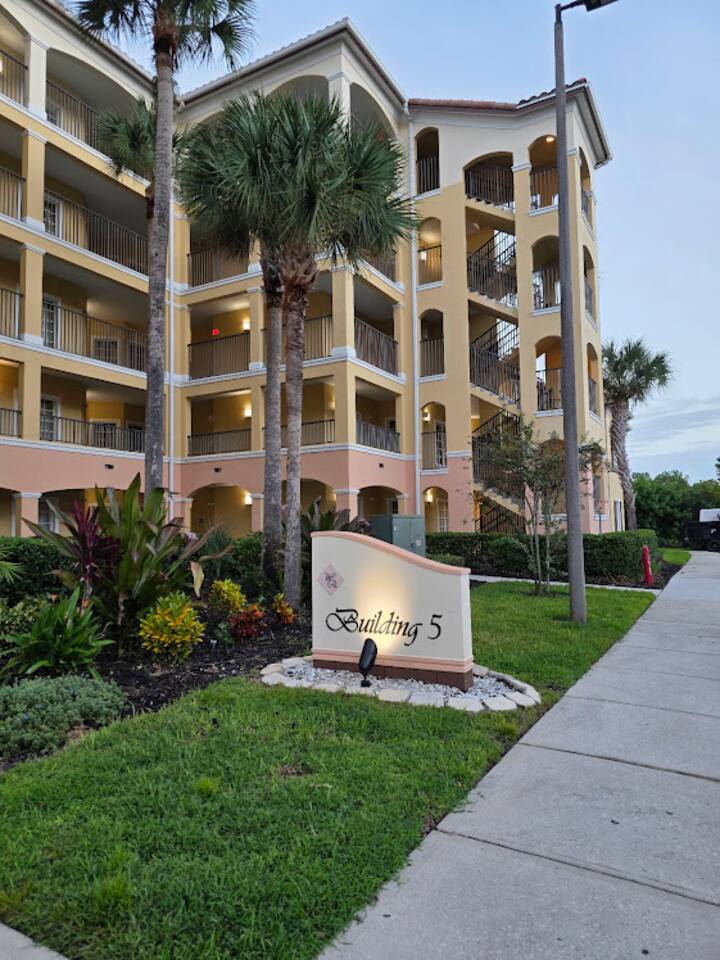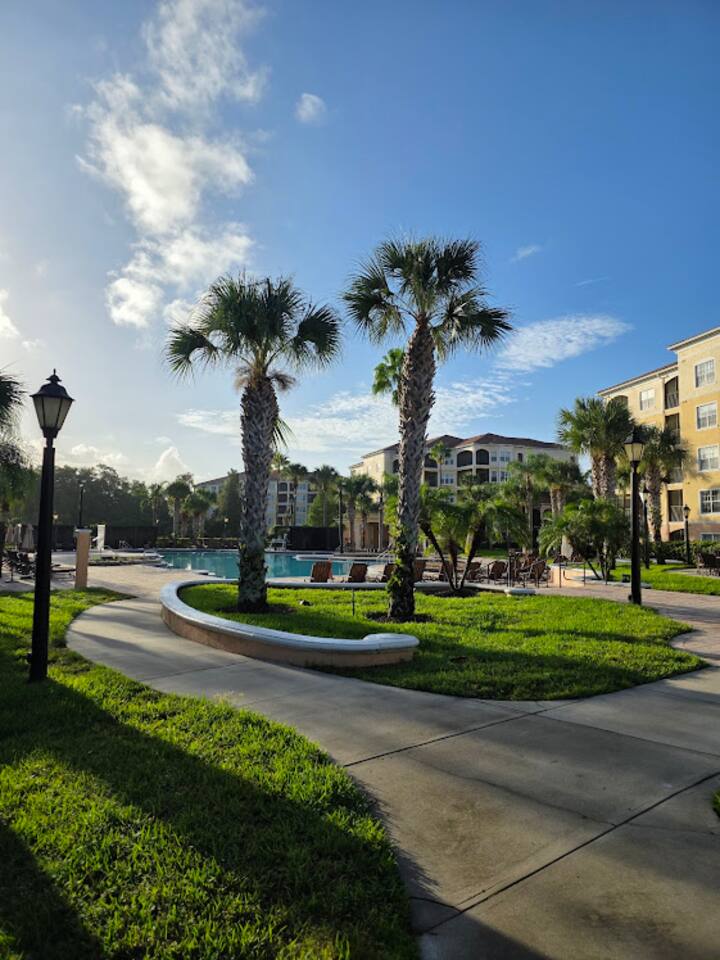 Enjoy your Orlando vacation in a spacious 2-bedroom, 2-bath suite just minutes from Disney, Universal, and SeaWorld. Relax after a day at the parks: ♦️1 King Bed + 2 Twin Beds (sleeps 4–6) ♦️Fully equipped kitchen & living room ♦️Balcony with outdoor seating ♦️Linens, towels, & essentials provided 🏊♂️Sparkling pool with loungers & tiki bar 💪Hot tub & fitness center 🏧Snack bar, mini market, gift shop & ATM 🧼Laundry facilities 🚃Shuttles to Disney & outlets (free) / Universal & SeaWorld $5
